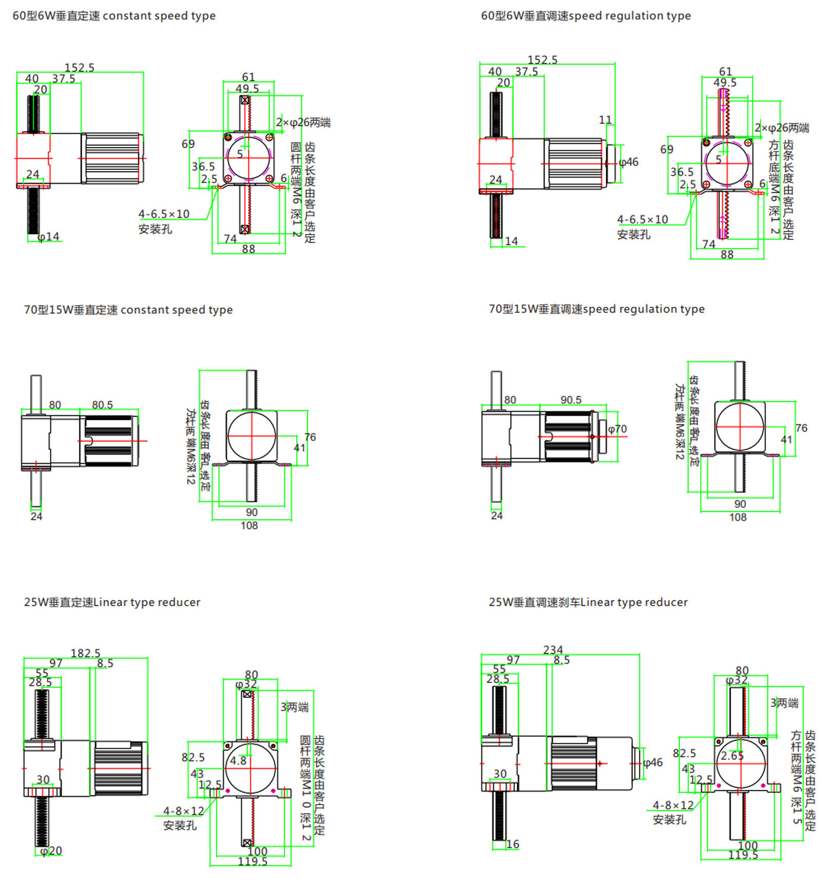 該種類型的直線減速器能與多種類的電機組合使用,實現(xiàn)直線運動。同時,行程移動速度和行程也有多種規(guī)格,可輕松實現(xiàn)需要的推、拉、升、降等用途。