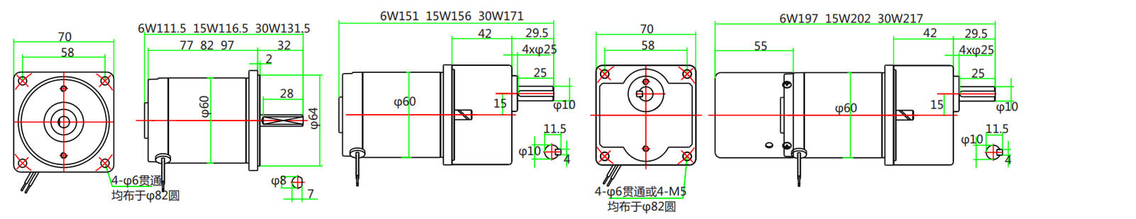 電機電壓、功率及轉速可在配件尺寸等條件允許下根據(jù)客戶要求定制。