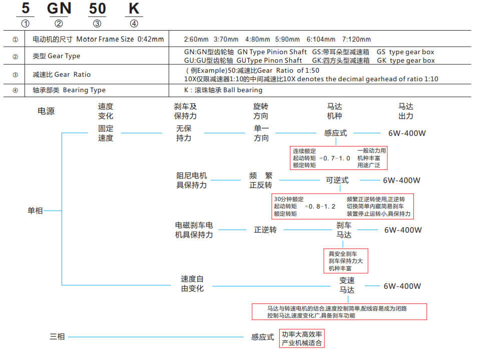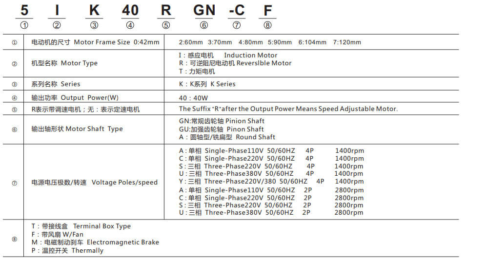微型交流齒輪減速電機型號定義