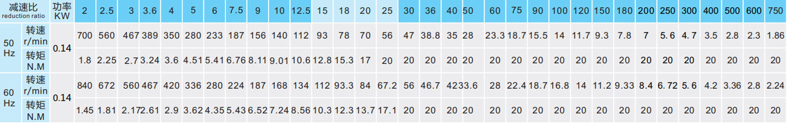 轉速是以電動機的異步轉速(50Hz:1400r/min、60Hz:1680r/min)為基準除以減速比而算 出來的數(shù)值。實際轉速將隨負載大小變化而有所變化。
