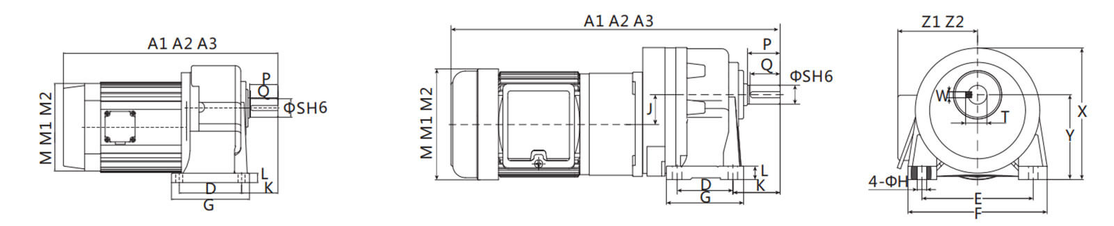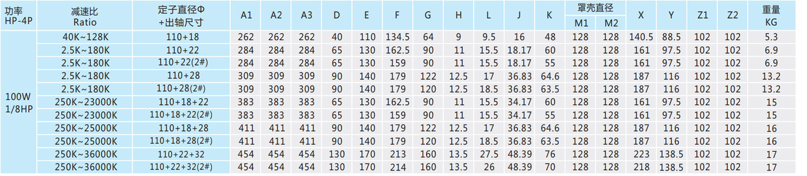 A2、M2、Z2為單相馬達(dá)尺寸。