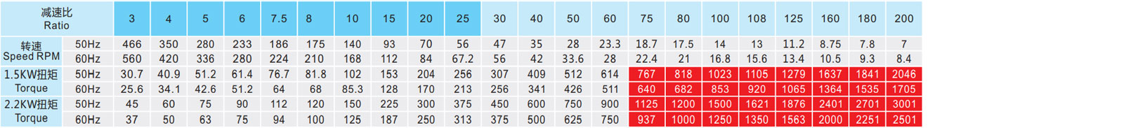 ▲ 表列轉(zhuǎn)速是基于電機(jī)異步轉(zhuǎn)速(50Hz:1400r/min、60Hz:1680r/min),額定負(fù)載時(shí),實(shí)際轉(zhuǎn)速為表列轉(zhuǎn)速的80%-98%。