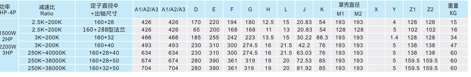 A2、M2、Z2為單相馬達(dá)尺寸。