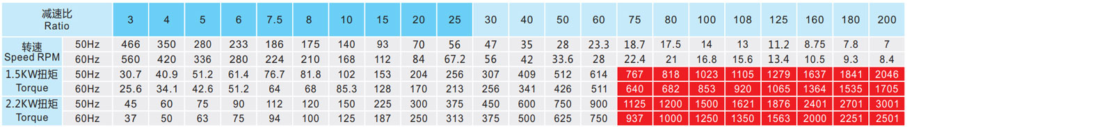 ▲ 表列轉(zhuǎn)速是基于電機(jī)異步轉(zhuǎn)速(50Hz:1400r/min、60Hz:1680r/min),額定負(fù)載時(shí),實(shí)際轉(zhuǎn)速為表列轉(zhuǎn)速的80%-98%。