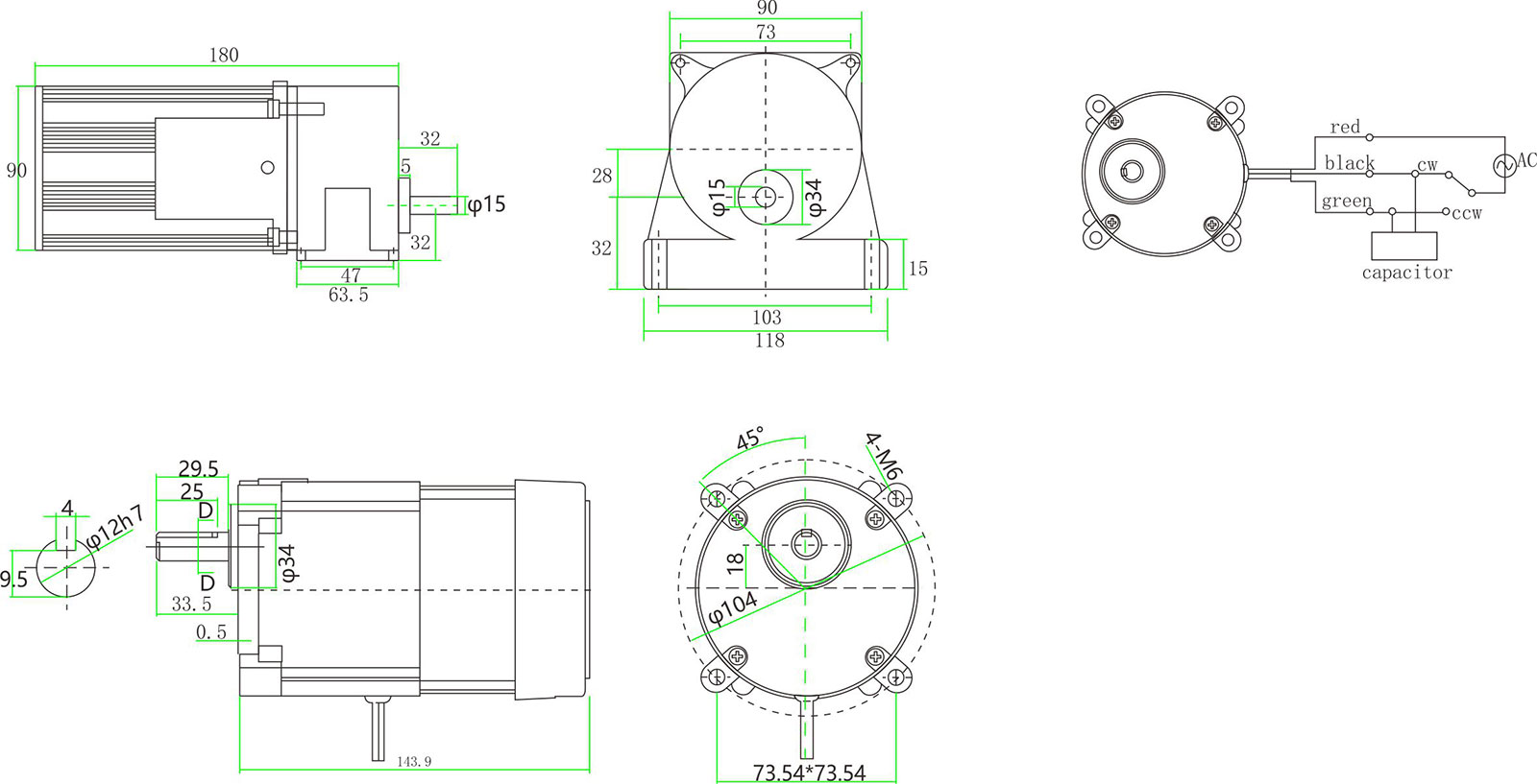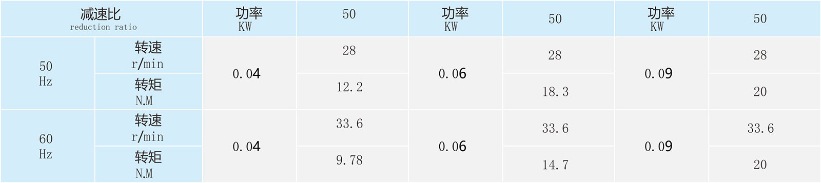 ▲ 注意:使用電壓和機型不同,電容容量不一樣,訂貨時請務必指明具體的型號。 轉速是以電動機的異步轉速(50Hz:1400r/min、60Hz:1680r/min)為基準除以減速比而算 出來的數(shù)值。實際轉速將隨負載大小變化而有所變化。 需要大于上表的減速比進行進-步減速時,可在電動機與減速器之間安裝減速比為1 : 10的中間減速器。 300K以上電機不適合重載場合使用。