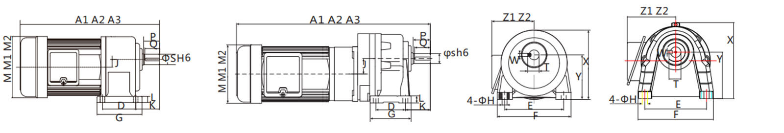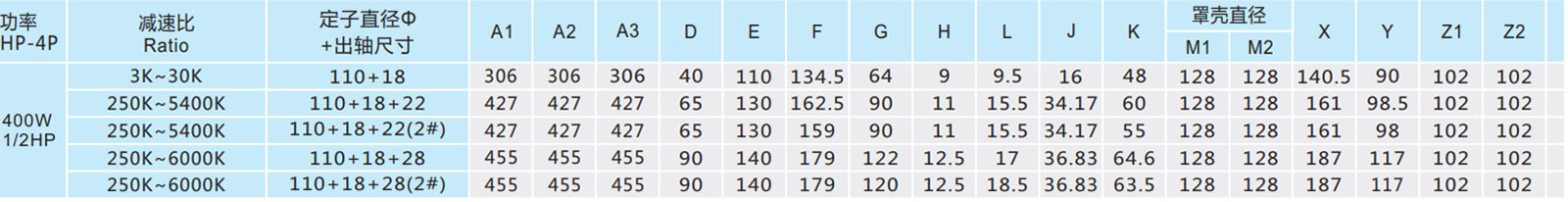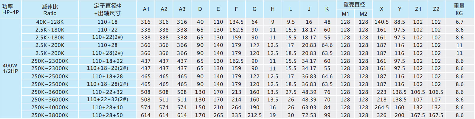 A2、M2、Z2為單相馬達(dá)尺寸。