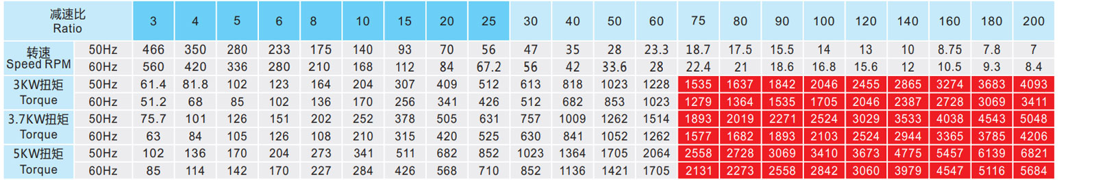 ▲ 表列轉(zhuǎn)速是基于電機(jī)異步轉(zhuǎn)速(50Hz:1400r/min、60Hz:1680r/min),額定負(fù)載時(shí),實(shí)際轉(zhuǎn)速為表列轉(zhuǎn)速的80%-98%。