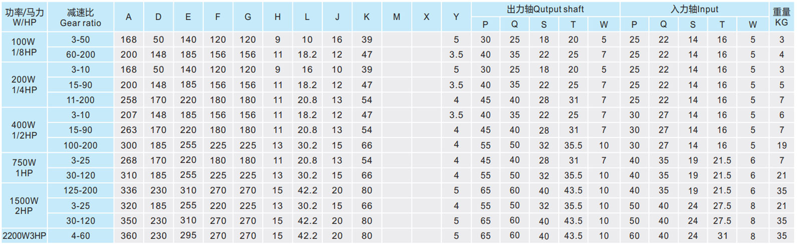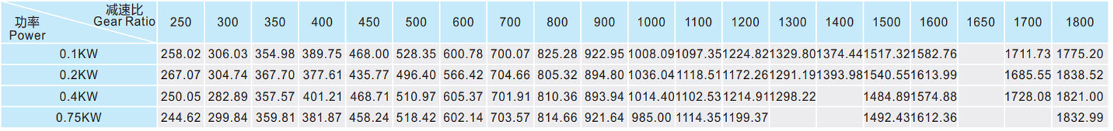 ▲ 表列轉速是基于電機異步轉速(50Hz:1400r/min、60Hz:1680r/min),額定負載時,實際轉速為表列轉速的80%-98%。