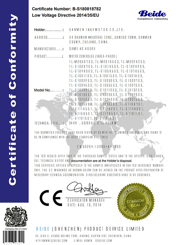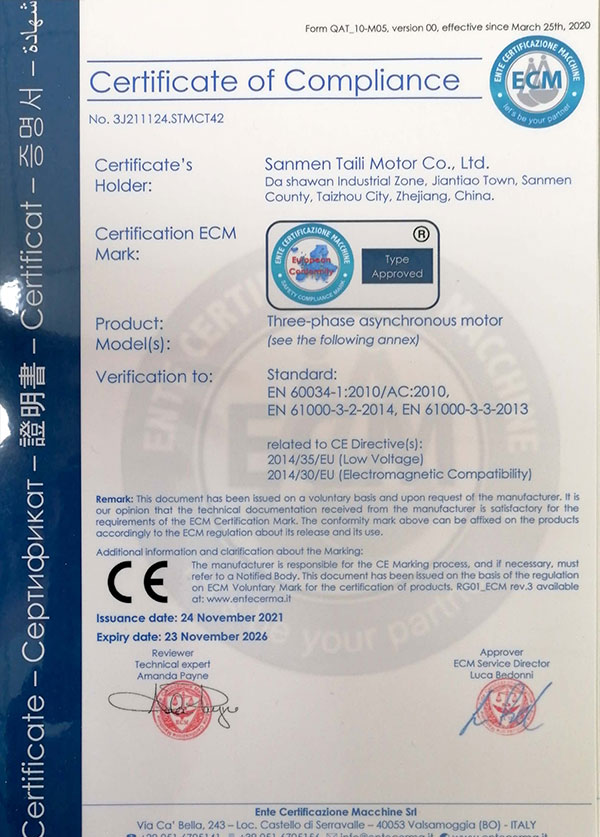 電容運(yùn)轉(zhuǎn)異步電動機(jī)CE認(rèn)證